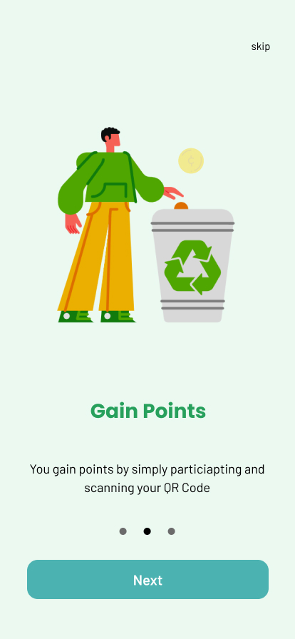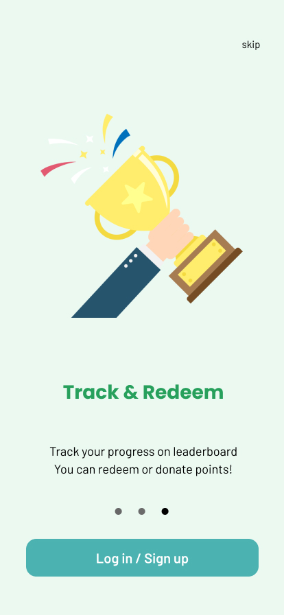 A points' tracker is present on the homepage that allows users to keep track of their rewards. In order to keep users motivated and engaged, positive reinforcement messages are sent daily. Additionally, a QR code scanner is implemented which will be used for verification and adding the respective points to the user’s account. Furthermore, the gamification aspect added is incorporated via a leaderboard where user’s can compete with one another and see who gets the most points. The leaderboard is reset every semester. Finally, weekly reminders are provided on the user’s homepage where they can see the available tasks to gain points. These points can be redeemed in terms of discounts from campus stores or through donations to environmentally conscious NGO’s.